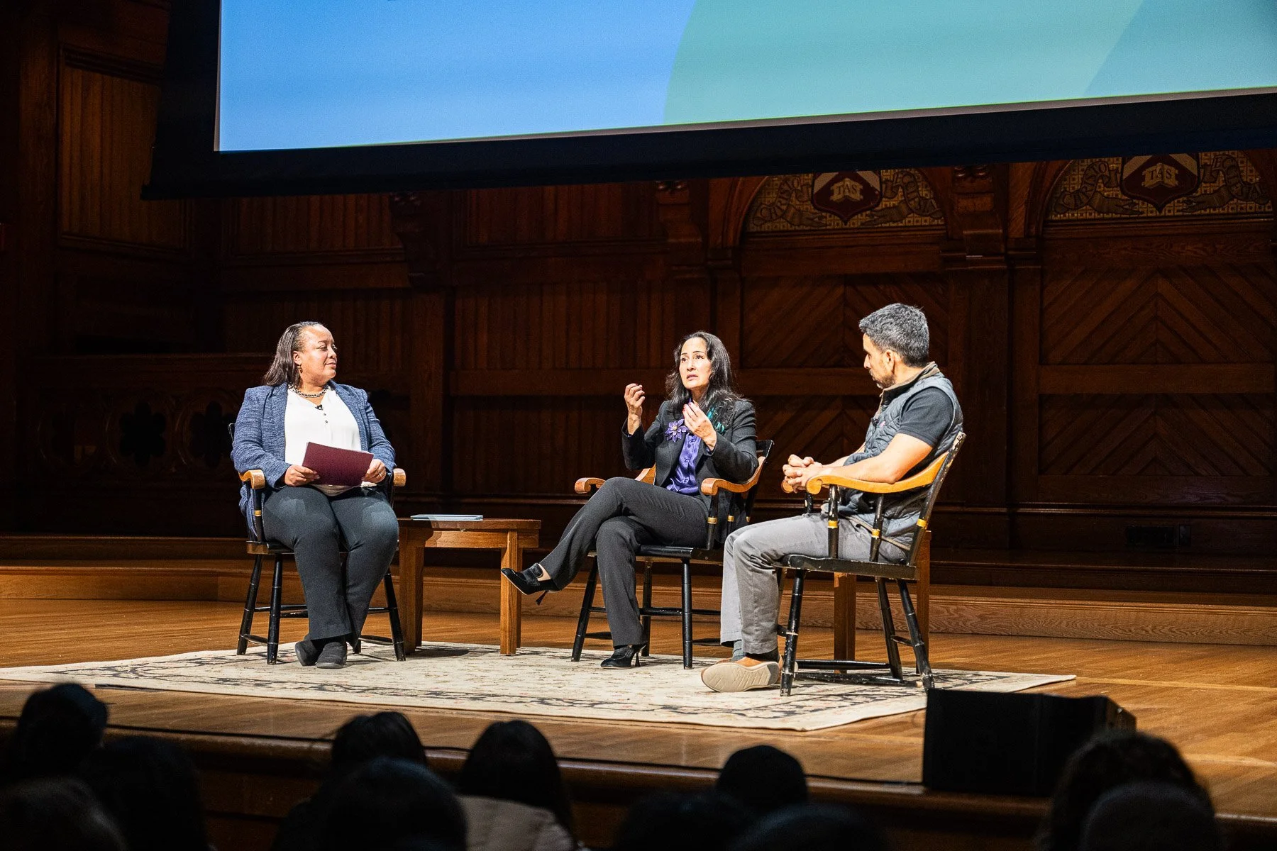 Drawing over 600 people in Sanders Theatre, Sal Khan shared his excitement about the potential of new AI-based tools to make learning more engaging and creative. He provided an inside-look into the development of Khanmigo, an AI-tutor that can be integrated with Khan Academy content to guide and support students. Cynthia Breazeal talked about her work creating social robots that can engage with children in a range of supportive ways and the importance of building broad literacy and fluency with AI across the education system. She also reminded us that while these new tools may exhibit human-like characteristics, they are still machines, and lack human understanding or empathy.